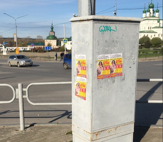 В ходе очередного рейда муниципальные инспекторы управления муниципального контроля выявили на в округе факт расклейки рекламных объявлений о продаже шуб в неположенных местах: на фасадах зданий, опорах линий электропередач, остановочных комплексах.