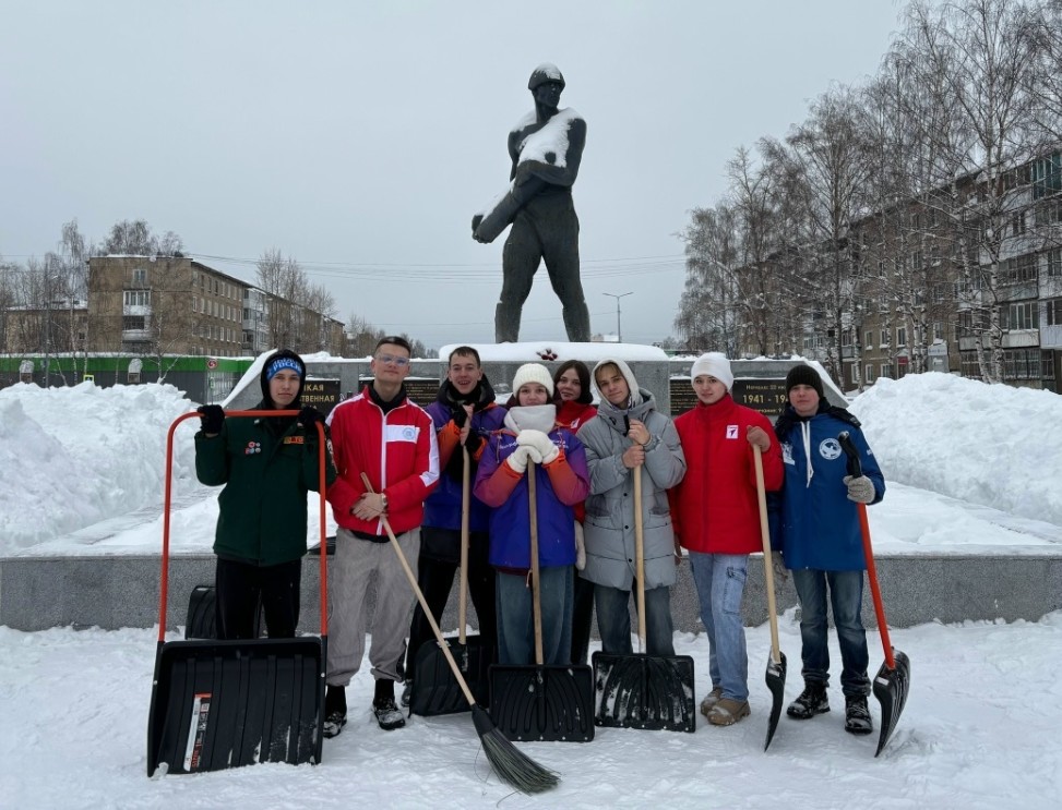 Активисты расчистили территорию возле памятника, который создан руками трудящихся, а не профессиональных скульпторов, и давно стал символом мужества и стойкости жителей города.