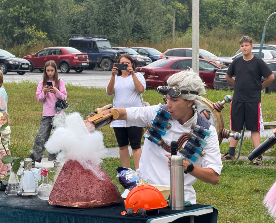Юные березниковцы не только играли, но и ставили интересные научные эксперименты. Так, малыши под чутким руководством сказочных героев наблюдали настоящий вулкан и замораживали розу с помощью жидкого азота.