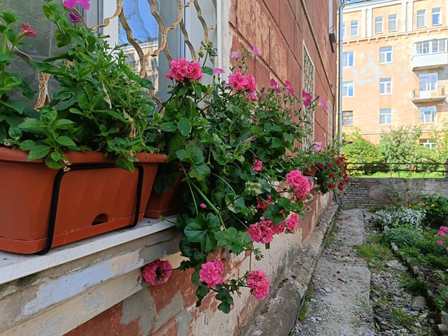 Теперь здесь радуют глаз красивые растения, а сами карнизы украшают вазоны с пышными яркими цветами. Ещё одна благоустроенная зона со цветами, дорожками и скамейкой благодаря трудам Ларисы появилась во дворе.