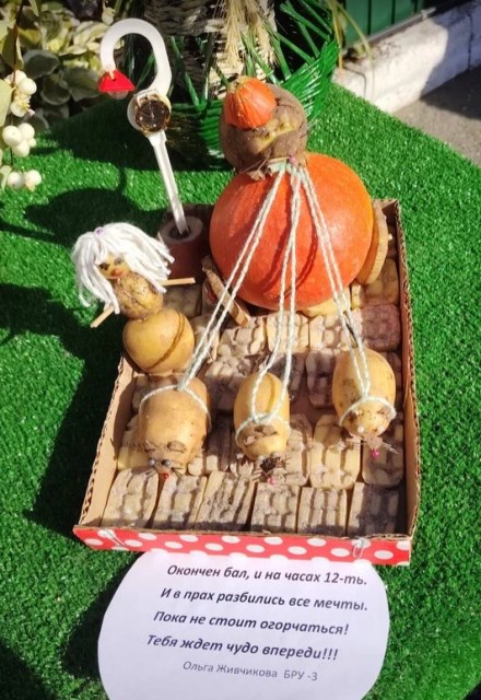 Её коллега Эльфия Масленникова, к примеру, сделала черепашку из картофельного клубня и лепестков роз, ставших панцирем. Долго на выставочном столе черепашка не задержалась – автор поделки с удовольствием подарила её девчушке из соседнего с Советом ветеранов дома, заглянувшей на яркий праздник.