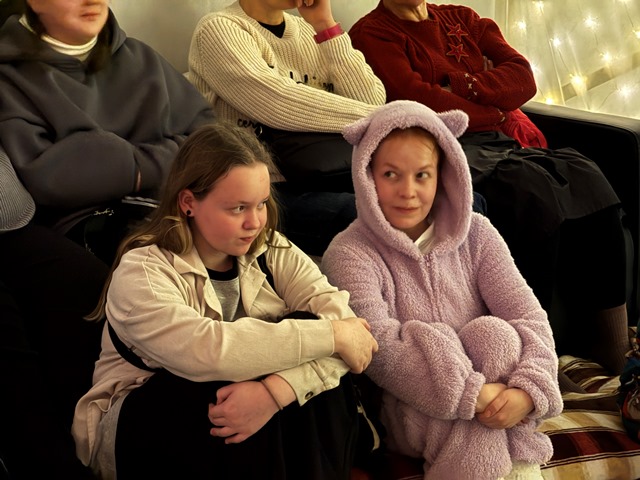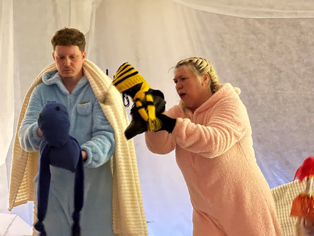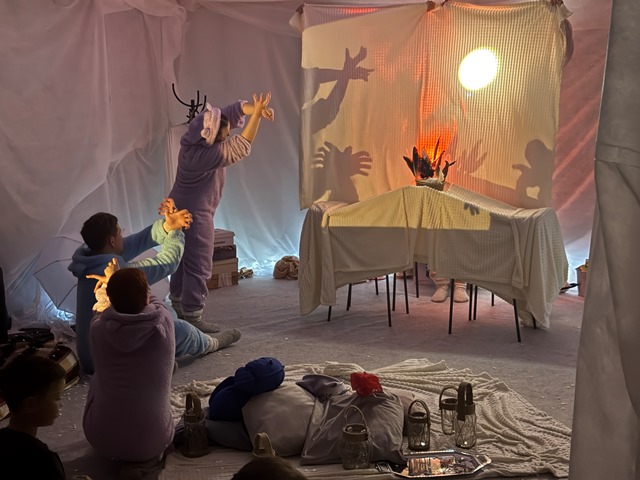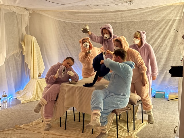 Сцена напоминает «штабик», какие мы строили в детстве из стульев и одеял. В этом домике всегда хорошо, интересно и безопасно. Спектакль подкупает особой ламповостью, уютом, невероятной близостью зрителей и артистов.
