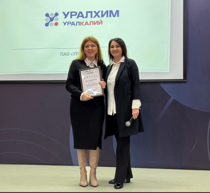 Надежде Васильевне вручили благодарность для компании «Уралкалий» за вклад в развитие чемпионата «Профессионалы».