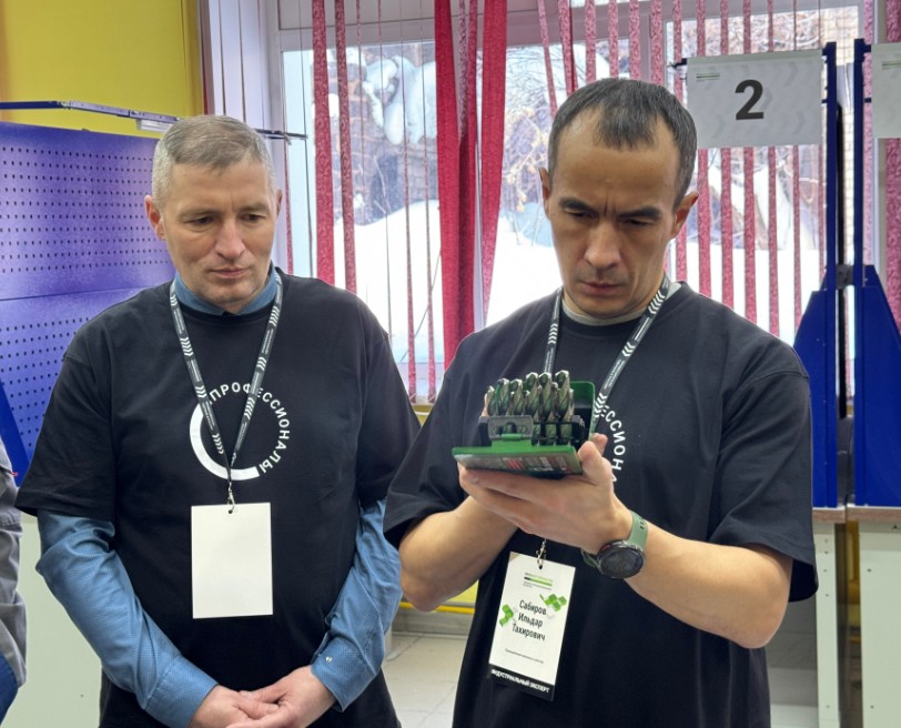 Мастер ремонтно-производственного управления филиала «Азот» Ильдар Сабиров (на фото справа) уже не первый год оценивает уровень выполнения модулей на чемпионате профмастерства: