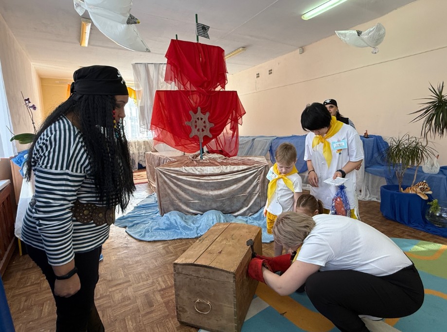 Примечательно, что познавательный квест провели в день рождения Березников – 20 марта. После торжественного открытия с танцами от воспитанников детского сада команды узнают о том, что им предстоит встреча с пиратами, которые приготовили для них непростые задания и испытания, получают путевые листы и отравляются по маршруту в поисках приключений и новых знаний. Вперёд, по разноцветным стрелкам на полу!