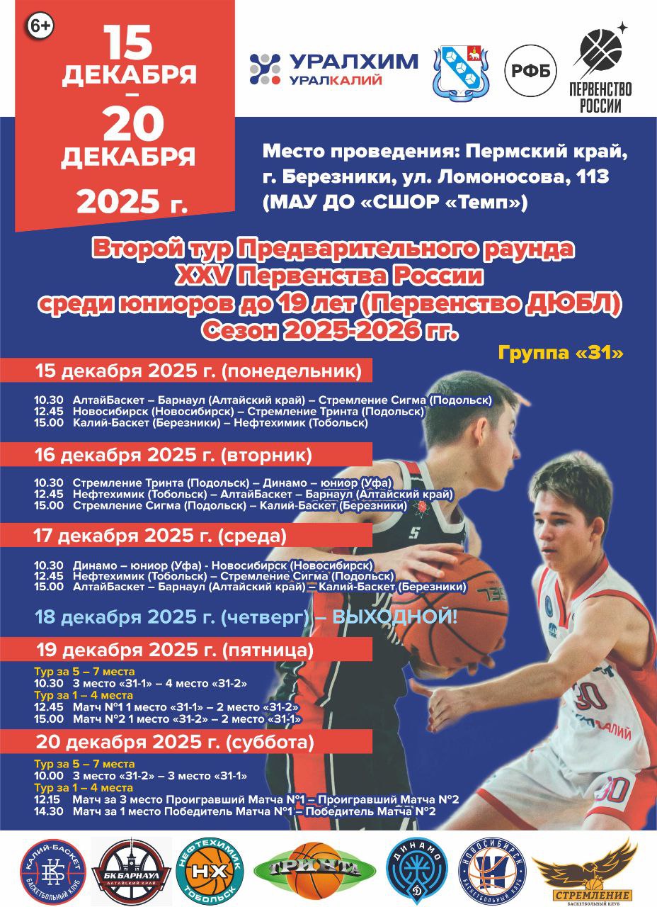 На следующей неделе Березники станут центром юношеского баскетбола - здесь пройдёт второй тур предварительного раунда Первенства России (6+).