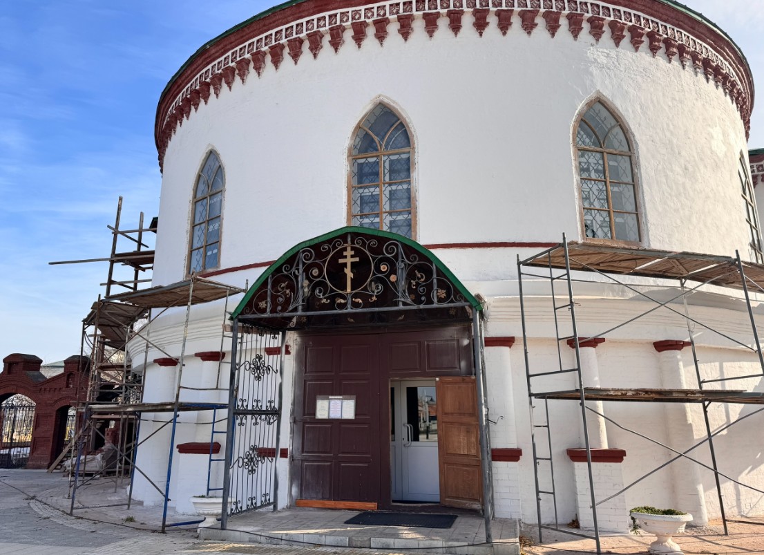 На территории объекта оборудована специальная мастерская, где специалисты подрядной организации изготавливают кирпичи по историческим лекалам. Параллельно они выполняют инъектирование трещин на фасаде храма.