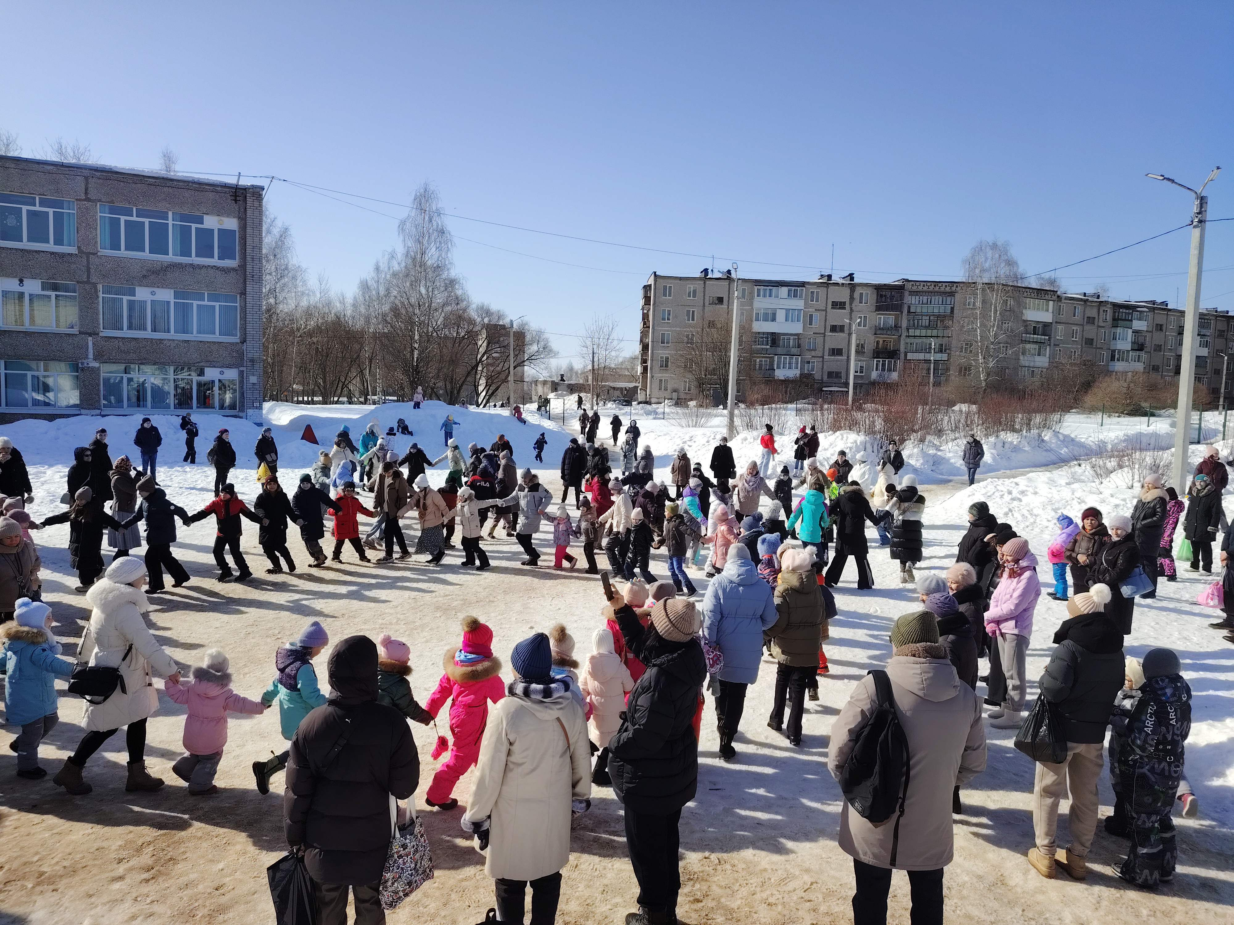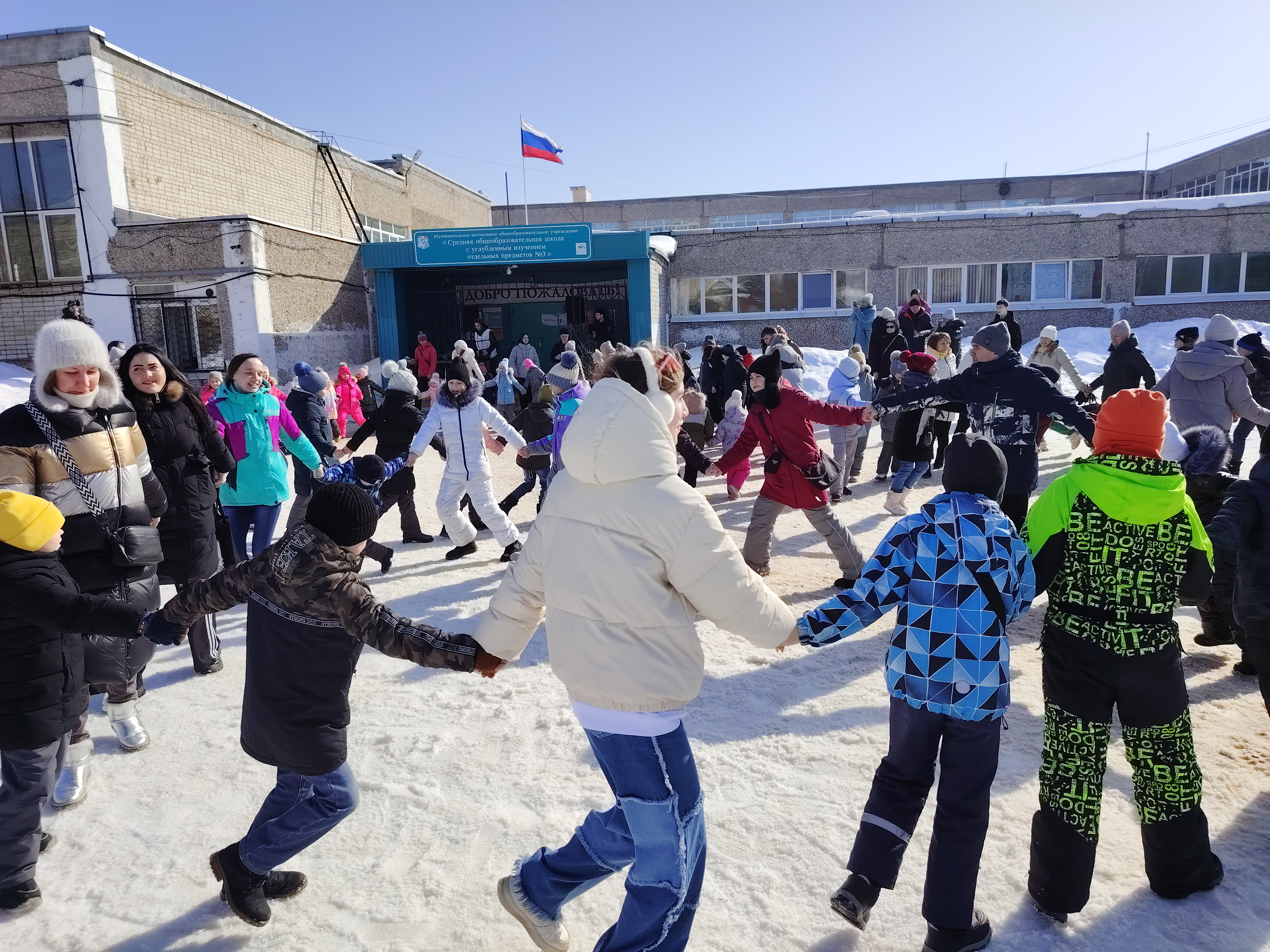 Праздник Широкой Масленицы собрал в Прощёное воскресенье жителей округа №26 во дворе 14-й школы. Вместе с депутатом Березниковской городской Думы Анастасией Горбачевой (внизу на фото в центре) сотрудники учебного заведения подготовили для многочисленных гостей интересную развлекательную программу.